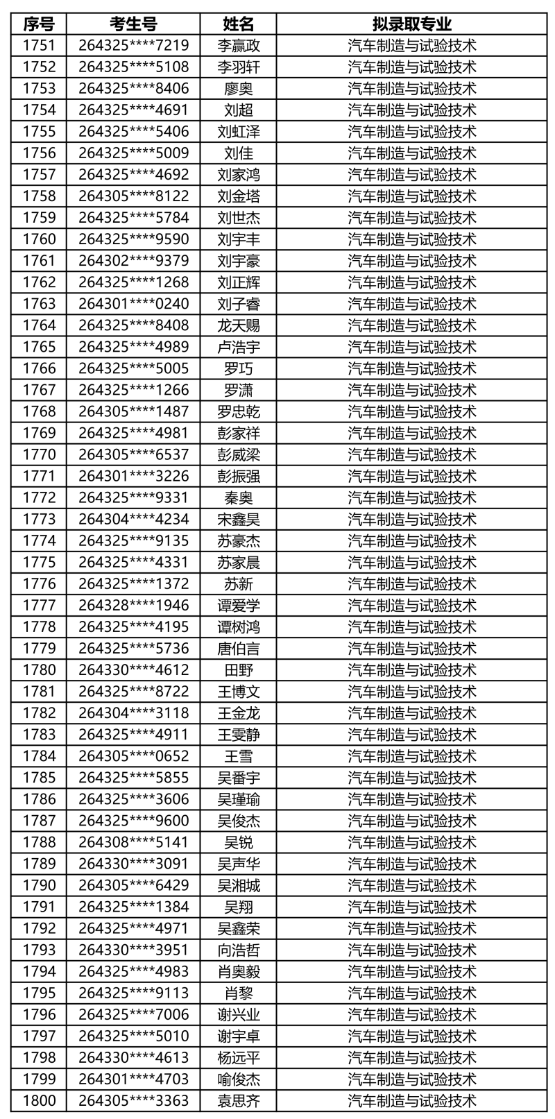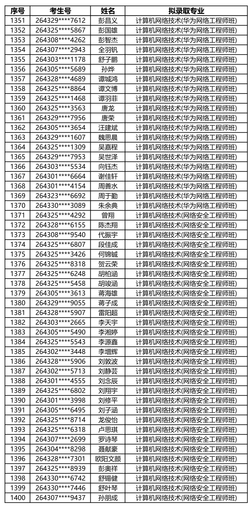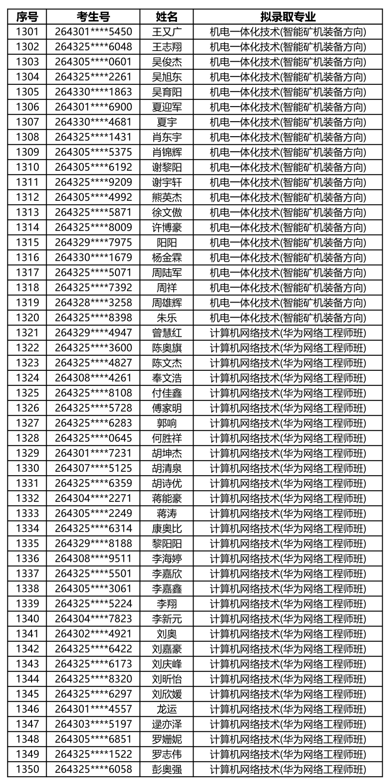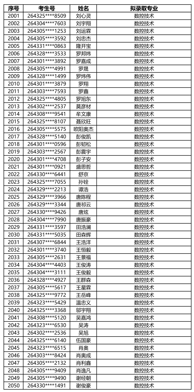 娄底职业技术学院 关于公示2026年单招录取考生名单 及录取分数的通知